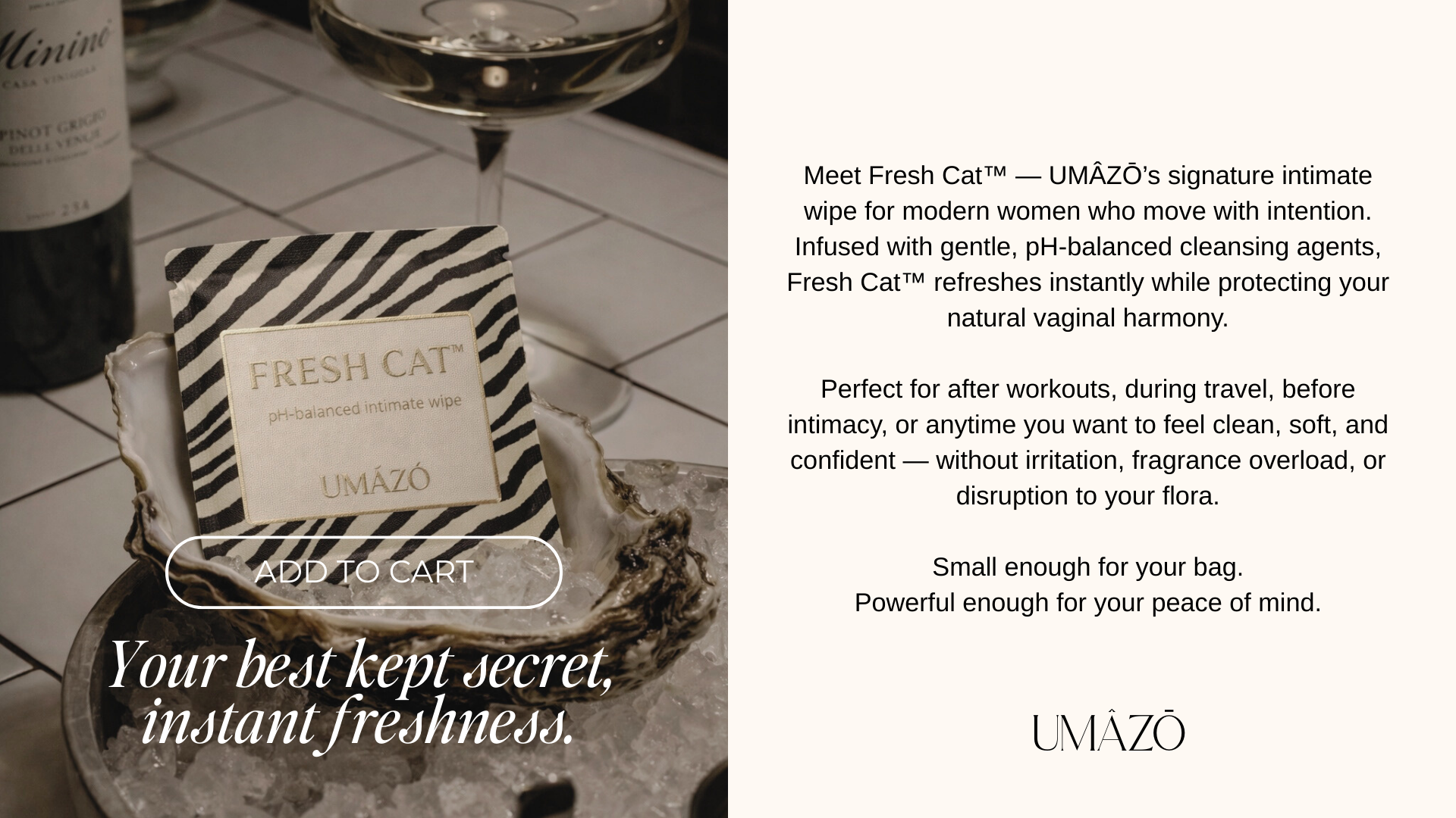 De UMÂZŌ Fresh Cat wipes zijn echt een gamechanger. Zacht, fris en perfect voor onderweg zonder dat het de natuurlijke balans verstoort. Dit voelt als luxe hygiëne, niet als iets klinisch.Elise M.